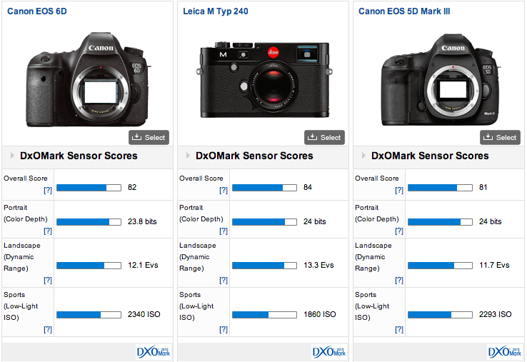 DxOMark published their test results for the new Leica M type 240 camera. The latest digital rangefinder from Leica show significant improvements over the previous M9 model, but the full frame cameras from Nikon still show slightly better dynamic range and low light capabilities: