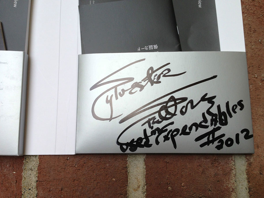 The black Leica M9 used by Sylvester Stallone in the movie Expendables II is currently listed for sale on eBay. The camera comes with a 35mm f/2.5 Summarit lens, a manual signed by Sylvester Stallone and a DVD of the movie: