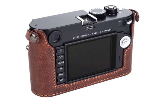 The Arte di Mano half case for your Leica M Type 240 is made of impressible tanned leather and is soft to the touch. The snug fit of this case stays on firmly with silver accented snaps positioned at the top. The design of the open back half case lets the optional EVF and Thumbs-up be used. If you like to use tripods, the bottom of this case has a nicely embedded tripod mount. Hand-made in Korea by master leather artisans, this soft leather case will help improve your grip and also protect your Leica M Type 240.