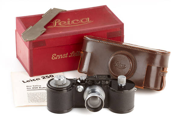 This famous camera, the ‘One Millionth Leica’, was presented to Dr. Ludwig Leitz by Willi Stein, the ‘Father’ of the Leica M3, in fine original condition, with matching and mint CF Summicron 2/50mm, ex. Leitz Museum (with original yellow museum sticker ‘M 964’ on base plate), ex Surat Collection – the camera is listed as one of the few official presentation cameras, no. 1.000.001 was given to Alfred Eisenstaedt.