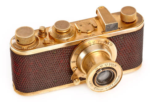 The famous presentation camera for Dr. Ernst Leitz II, in good original condition, with matching Elmar 3.5/5cm, ex. Leitz Museum (with original red museum sticker ‘M 163’ on base plate), ex. Surat Collection