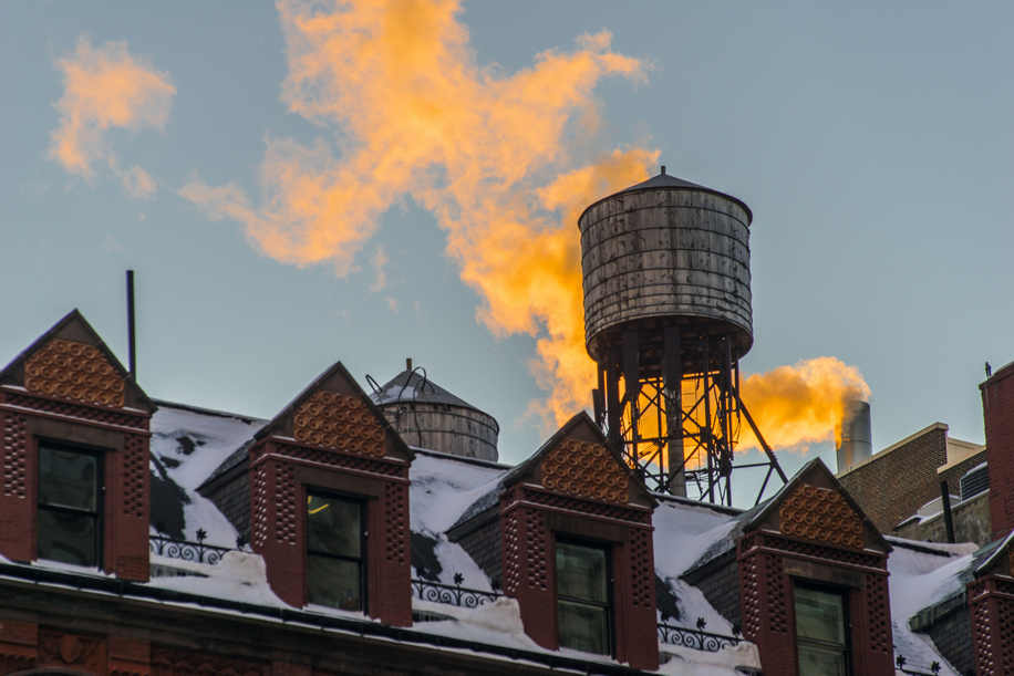 In the scene below the setting sun lit the smoke from behind while the foreground buildings remained in deep evening shadow, a difficult situation for any camera. the A7r pulled it off with excellent dynamic range and accurate color rendition and requiring only modest post-processing to balance out the light to dark areas.
