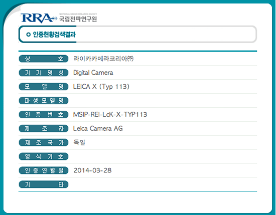 A new Leica X type 113 camera was registered at the Korean Radio Research Agency. This is an indication that the new model will most likely have built-in Wi-Fi capabilities. I expect the new X camera to be announced at Photokina this year (September).