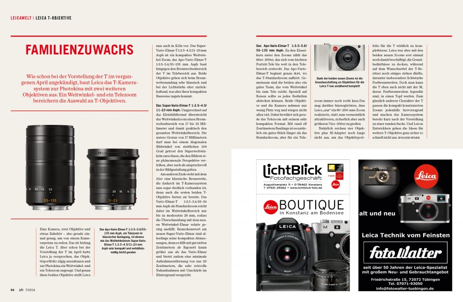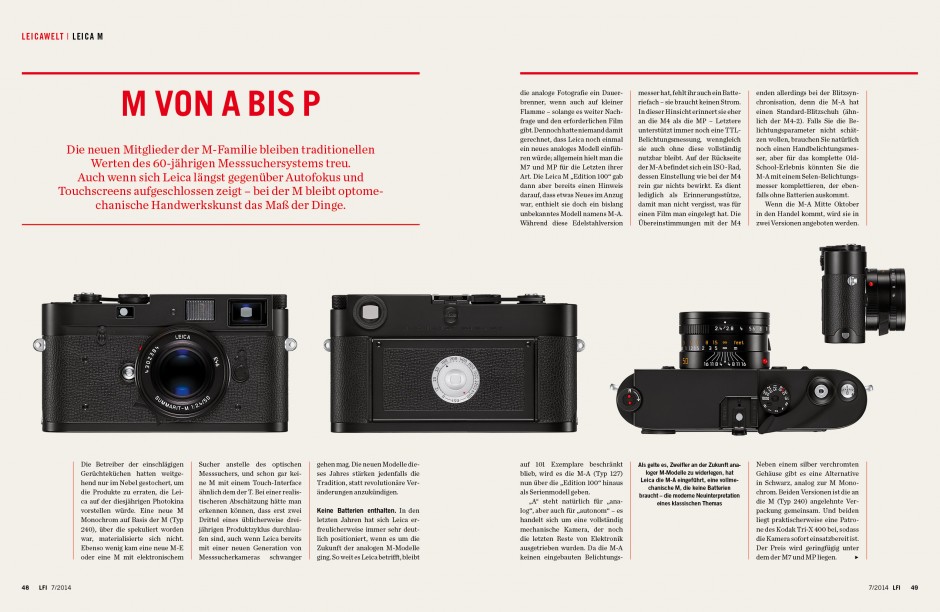 The new LFI magazine (Web | Google Play | iTunes) is out and it covers the latest products Leica announced at Photokina (click for larger view):