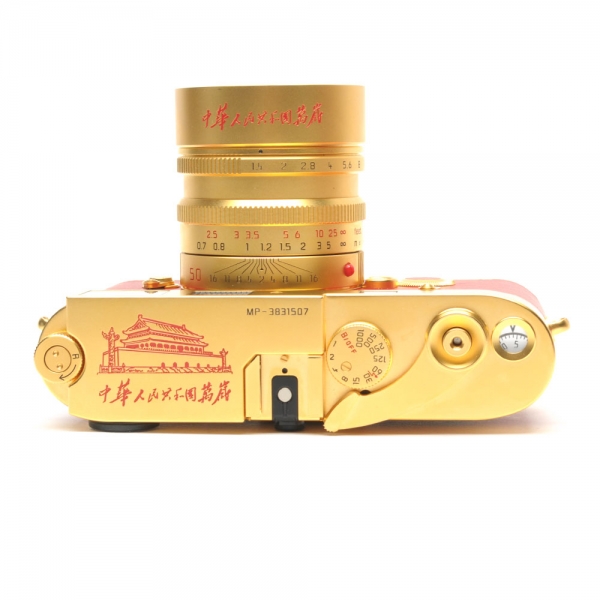 Sixty of these MP gold sets were made to commemorate the 60th anniversary of the People’s Republic of China in 2009. The body, #3831507, is gold plated and covered in red calf’s skin. The lens is the 50mm1.4 Asph, #4073368. This set does not have the edition number. This is not uncommon in special editions for Leica to produce a few units as production samples, which are outside of the numbering of the edition. We have seen this with the current M60, the M9-P Hermes and the Paul Smith X2, just to name a few. This one comes with the lens, cap and display box. There is no outer box or paperwork present. The camera has seen very slight use as there is evidence of the mounting of a strap on the camera. This is a very rare and uncommon camera to see, especially here in the USA!