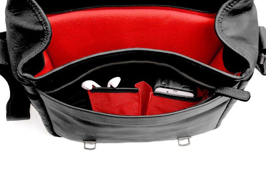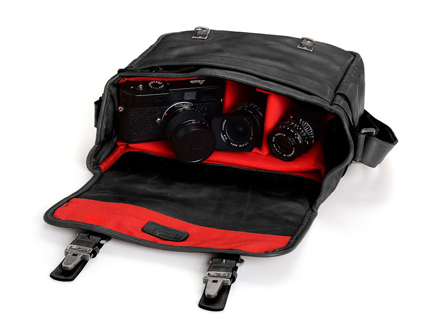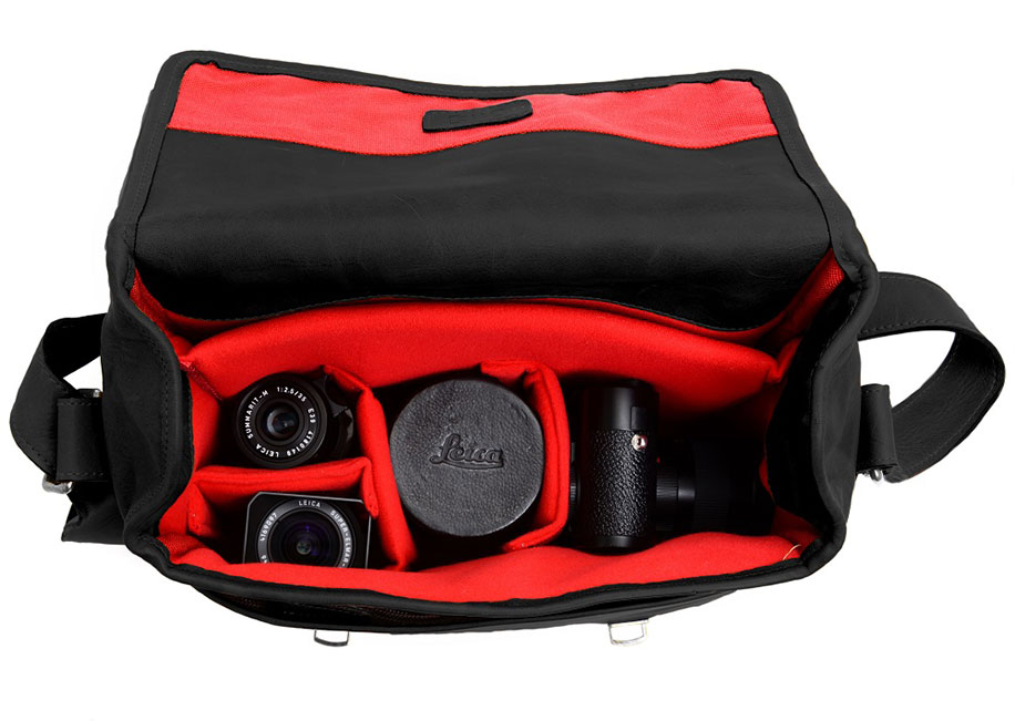- The signature Leica red interior is fully customizable, padded with premium closed-cell foam, and can accommodate one Leica M-System camera, two to three lenses, an iPad and small personal items. The Berlin II also features a zipped organizer pocket, a convenient removable top-grab handle, a red rivet accent and a streamlined back pocket.