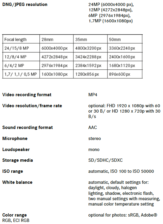 - Ability to save two versions of the photograph. The JPEG image files are saved in the selected framing, while the RAW files in DNG format preserve the entire field captured by the 28 mm lens.