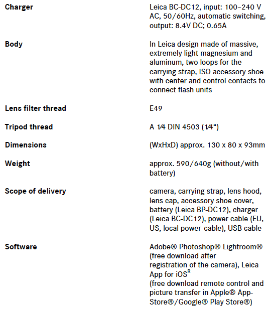- Summilux 28 mm/f1.7 ASPH lens with macro-mode