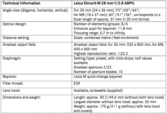 - Leica Elmarit-M 28mm f/2.8 ASPH