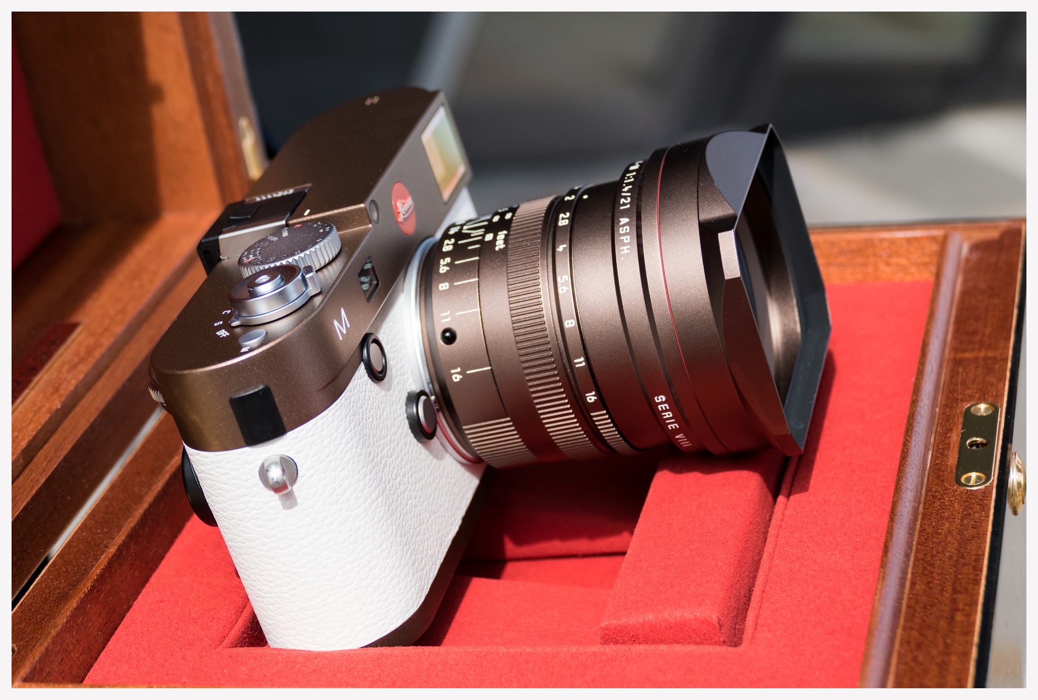 Leica Store Frankfurt currently has for sale this unique bronze body/white leather Leica M Typ 240 camera. The kit is equipped with a matching bronze Summilux- M 1:1.4/21mm ASPH lens.