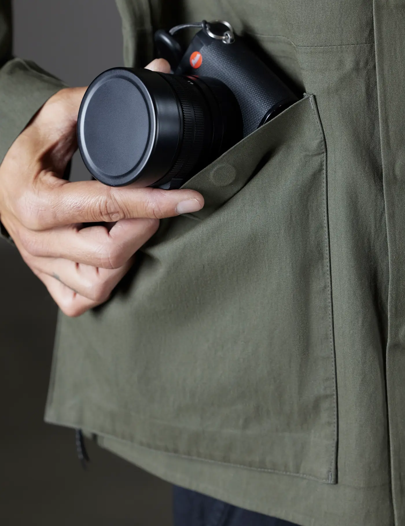 “In collaboration with Leica, we constructed this uniquely functional jacket from a weather-resistant, waxed cotton-nylon blend fabric and designed it with the specific needs of photographers in mind. We finished it with the thoughtful details we’re known for, creating a spacious outer layer that honors the spirit of the globetrotting artists who inspired it.”