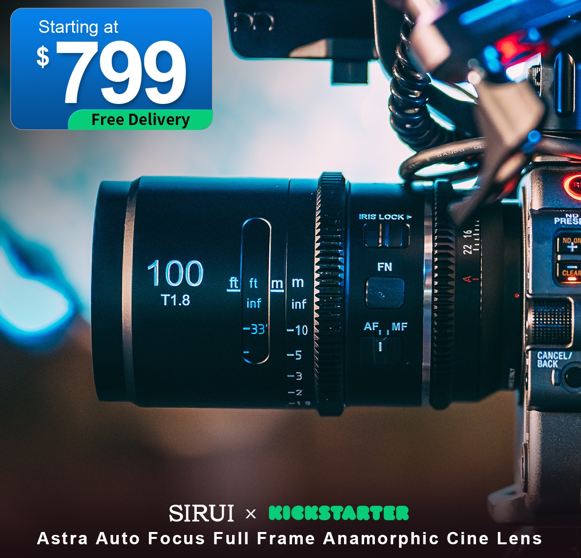 Now on Kickstarter: the world’s first Sirui Astra 50mm/75mm/100mm 1.33X full-frame autofocus anamorphic cine lenses for E/Z/L