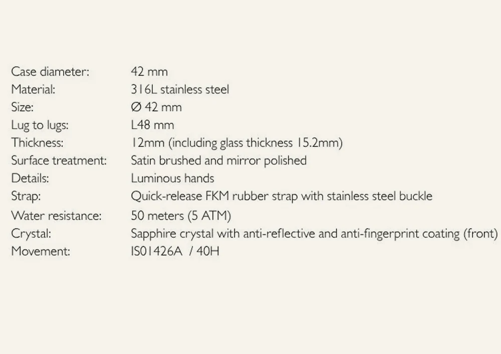The bezel is designed based on the classic “Sunny 16” principle. The luminous pearls indicating the F-number correspond to ISO and shutter speed. This universal principle in photography allows photographers using film to align the luminous pearls with the aperture value at different film speeds, and quickly match the ISO indicated below the inner bezel to the appropriate shutter speed. This allows for simple metering, integrating photographic parameters into the time-reading process and seamlessly integrating timing with the professional logic of photography.