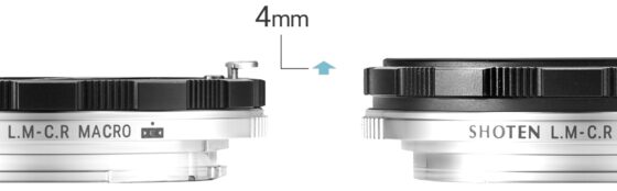 The SHOTEN LM-CR ME is a mount conversion adapter that allows Leica M-mount lenses to be used with Canon RF-mount mirrorless cameras. It features electronic contacts that support EXIF recording and focus guides, transmitting various information to the camera (AF is not supported). Furthermore, a 4mm helicoid extension shortens the lens’s minimum focusing distance, allowing you to get closer to your subject.