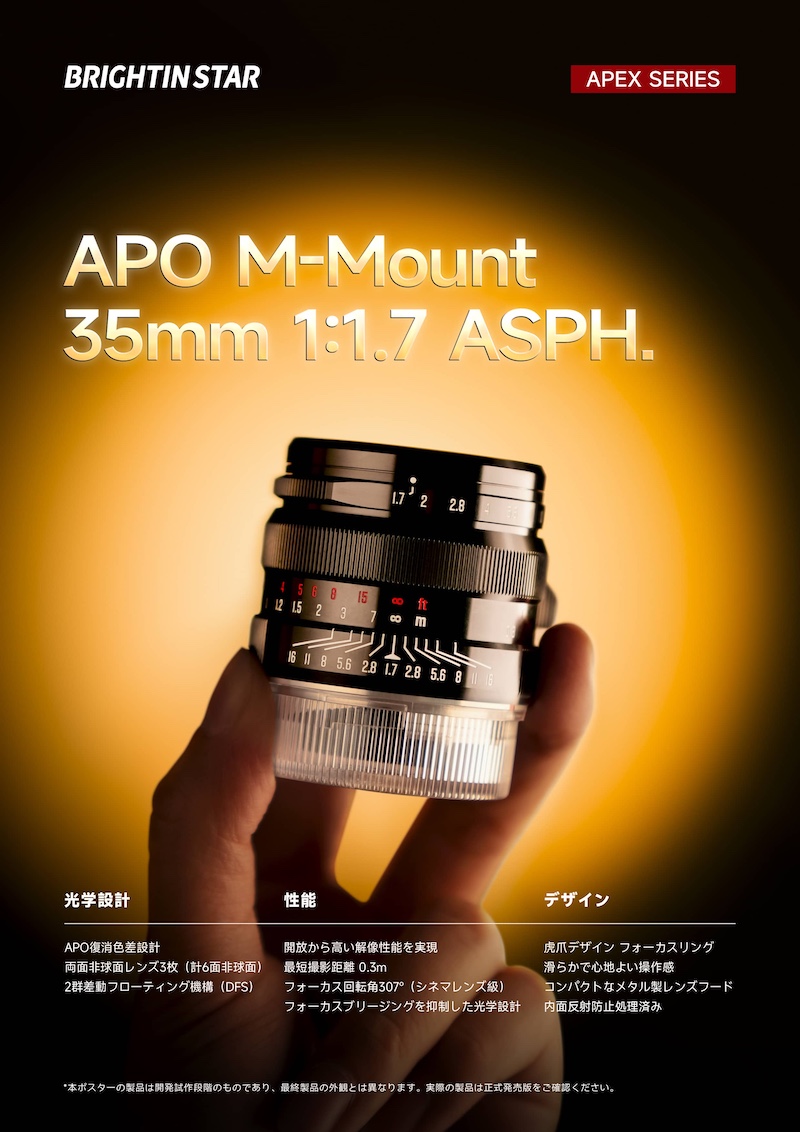 Brightin Star APO M 35mm f/1.7 ASPH lens for Leica M-mount (development announcement, check website for updates).