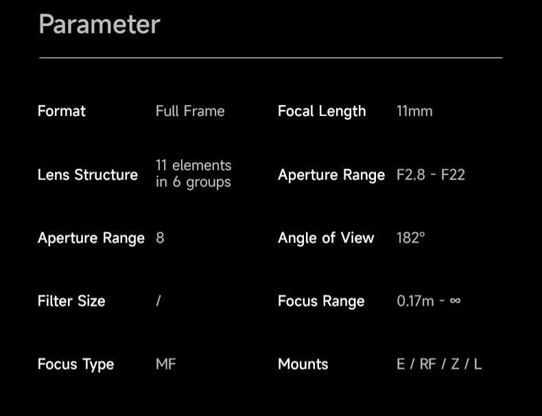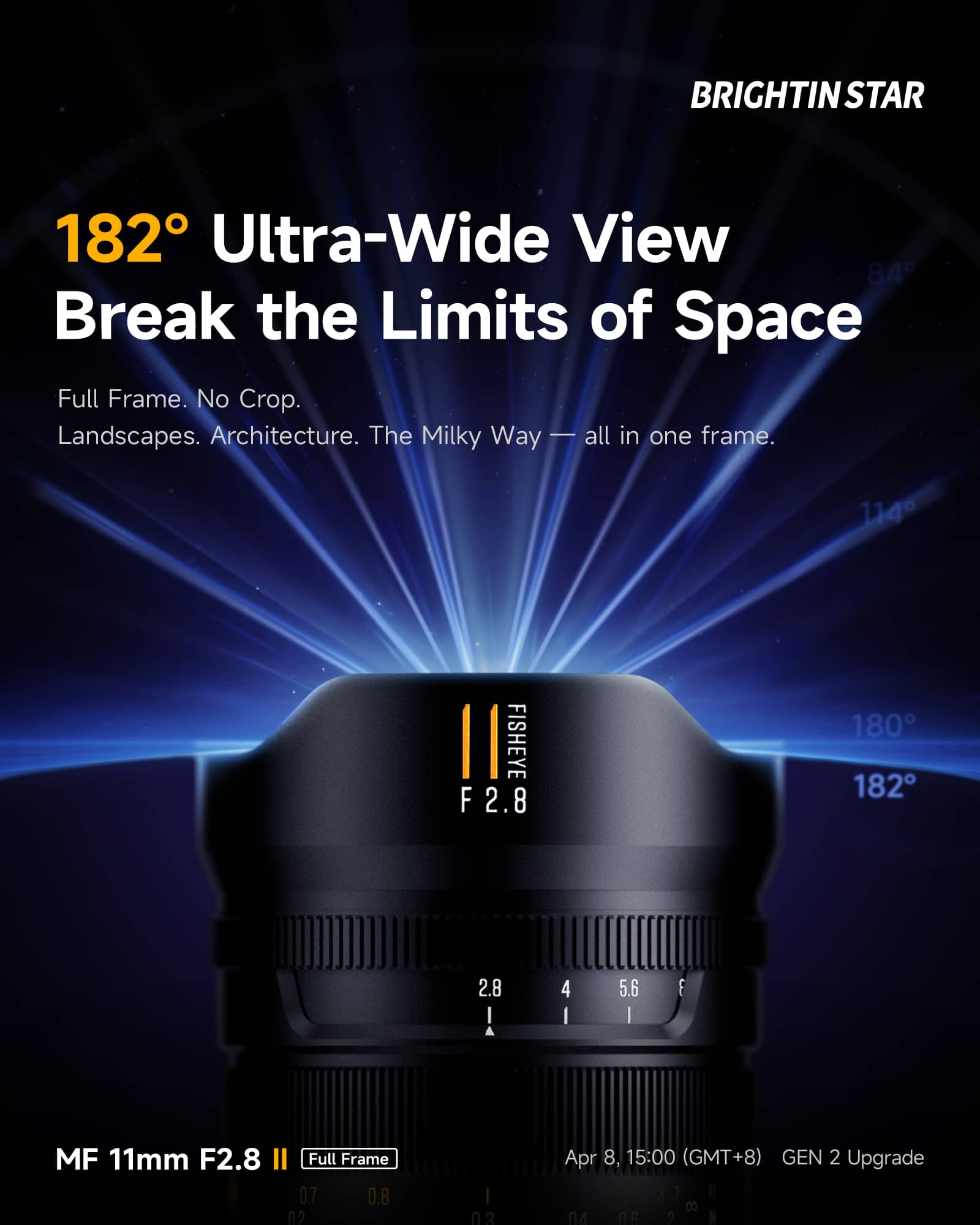 The previously reported Brightin Star 11mm f/2.8 II full-frame fisheye lens for L mount has now been officially announced – this is the second generation of the Brightin Star 11mm f/2.8 model.