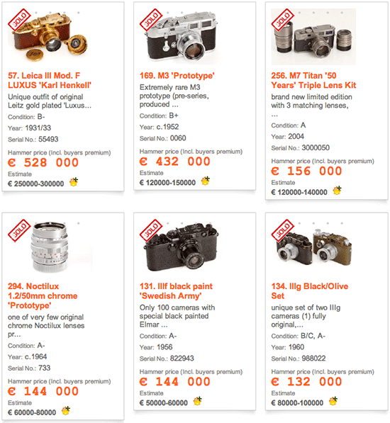 The results of the 23rd Westlicht camera auction are now available online. Those are the three most expensive Leica cameras sold:
