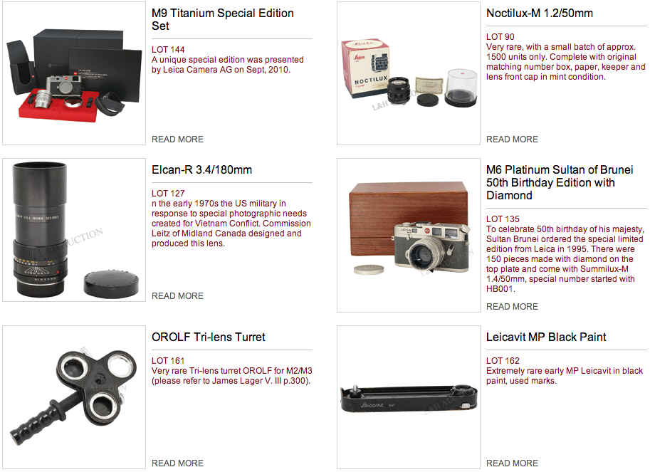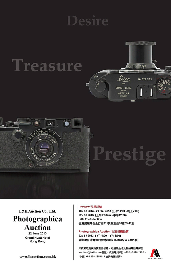 The L&H Photographica Auction that will take place on June 22 in Hong Kong has few rare Leica cameras – download this PDF file for more information: