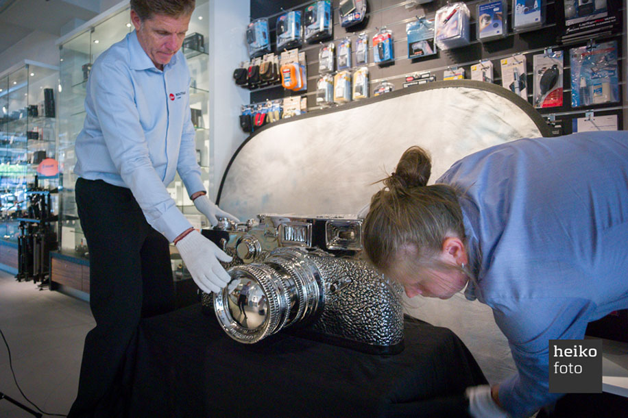 The Leica Boutique (Foto Henny Hoogeveen) located in The Netherlands has listed a stainless steel Fake Leica sculpture by the Chinese artist Liao Yibai for sale. It seems that two different sized sculptures are available. Pricing is not listed on their website (available upon request) but a similar sculpture located at the new Leica LA store is said to be valued at $1 million.