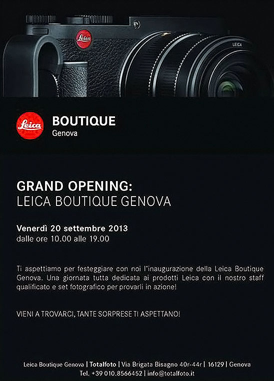 A new Leica Boutique is set to open its doors in Genoa tomorrow. The new store is part of Totalfoto.