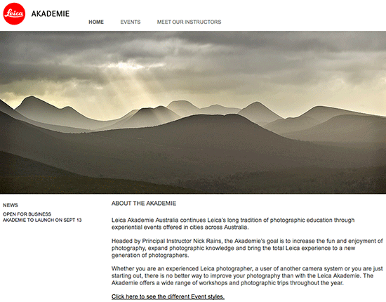 As of September 13th, 2013 Leica Akademie is available also in Australia. Check the new dedicated website at www.leica-akademie.com.au for more information.