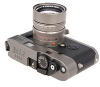 198M7 “Handmade titanium camera” Prototype , 2002Original factory prototype from the project “handmade titanium camera”,which was made as a one of a kind model for Sheikh Saud Al-Thani of Qatar inthe year of 2002. While the outer parts of the final version of this camera were in all-titanium, including the body cover , the unit here has a black leather body cover and some black knobs and levers, which let it look a bit like a “titanium Panda” version. The set finally delivered contained five different lenses, all with solid titanium mounts. The camera here comes with a later solid titanium mount version of the Summilux-M 1.4/50 ASPH of 2004 (from “50 years of Leica M”edition). This camera and lens have been authenticated by Lars Netopil.$600,000