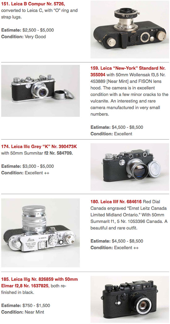 Another Tamarkin Rare Camera Auction will take place this Sunday, December 8th at 10:00 am EST. Here are some of the Leica camera highlights (the full catalog can be downloaded here):