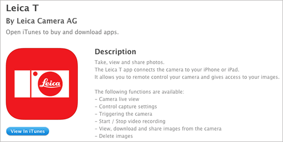 Compatibility: The Leica T app supports the Leica T (Typ 701) camera.