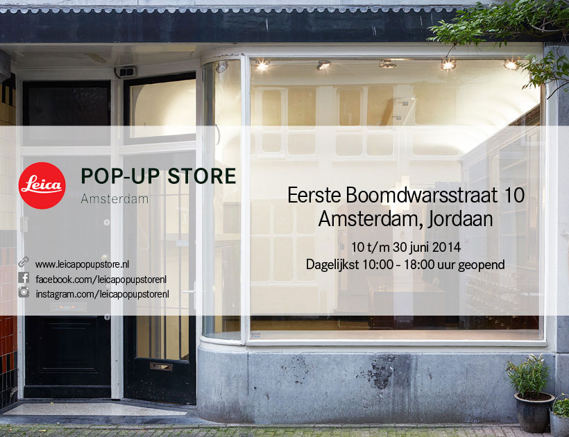The first Leica POP UP STORE is coming soon in the Netherlands. The exact location is Eerste Boomdwarsstraat 10 in Amsterdam (Jordaan). The location will be open 7 days a week (10:00-18:00) from June 10 till June 30th. For more information visit the Dutch and English website: www.leicapopupstore.nl or www.facebook.com/leicapopupstorenl.