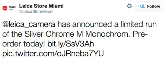 The new new Leica M Monochrom in silver chrome is now available for pre-order at the Leica Store Miami. The price is $7,950 (same as the black version). Leica has not officially announced any details about this camera (press releases), but it seems that the new silver chrome Monochrom will be a “limited run” (the new type 230 will be coming in September):