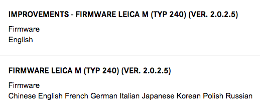 Firmware update 2.0.2.5 for the Leica M 240 camera is now available on the Leica Camera US website. The update was initially released few weeks ago, but then it was pulled out for unknown reason. Here is the change log: