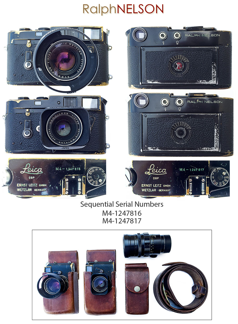 I received an unusual email from Ralph Nelson (www.ralphnelson.com) – he is trading his two Leica M-4 bodies with sequential serial numbers and three Summicron lenses (35mm, 50mm, 90mm) for a set of current Leica M bodies and lenses. His M4 film set has been used on many Hollywood films in the past 45 years. If you are interested in this offer, here are the details (click on images for larger view):