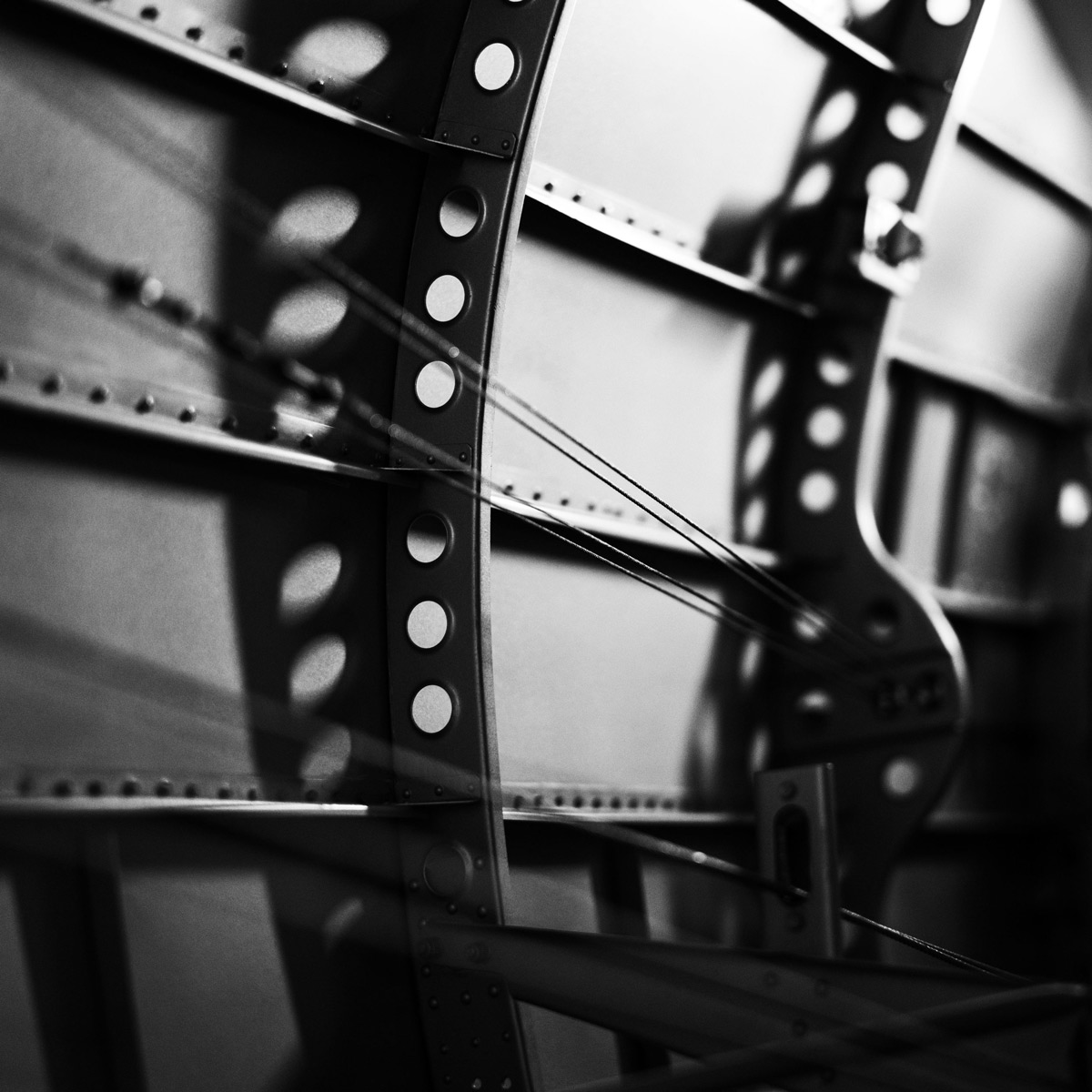 Having an electronic viewfinder really helps with the visualization of the light (as the sensor will see it) in tricky scenes. I stuck the camera into the fuselage of a World War II aircraft that was lit by an LED work light to get this image.