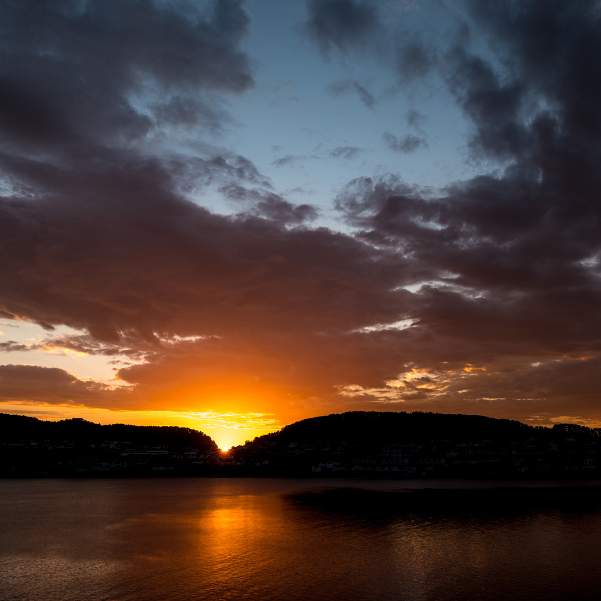 Midnight sun over a fishing warehouse in Alesund, Norway