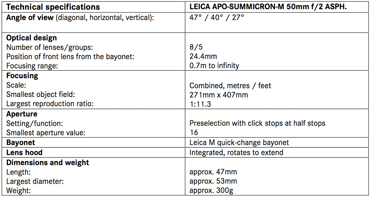 The Leica APO-Summicron-M 50 mm f/2 ASPH. (silver anodised) is scheduled to be available at the end of July 2016 at a suggested retail price of £5,900 including VAT.