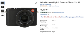 The Leica D-Lux 8 camera is listed for $2,634 on Amazon