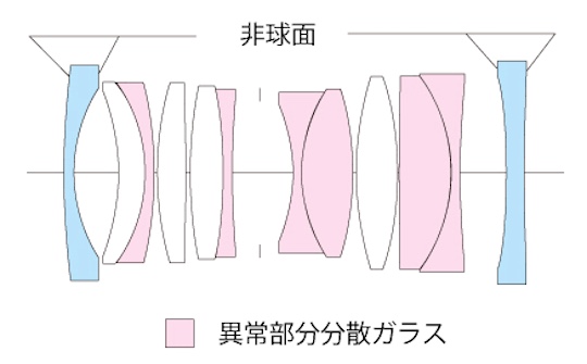 The lens consists of 12 elements in 8 groups, including 6 elements of anomalous partial dispersion glass and 2 double-sided aspherical lenses, and is also equipped with a floating mechanism.
