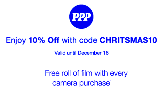 PPP Cameras is currently offering 10% off with the coupon code CHRITSMAS10 (valid until December 16). You can also get a free roll of film with every camera purchase.