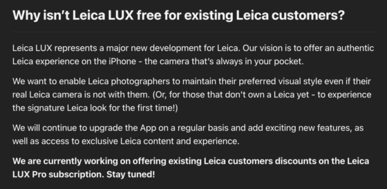 → Leica is currently working on offering existing Leica customers discounts on the Leica LUX Pro subscription.