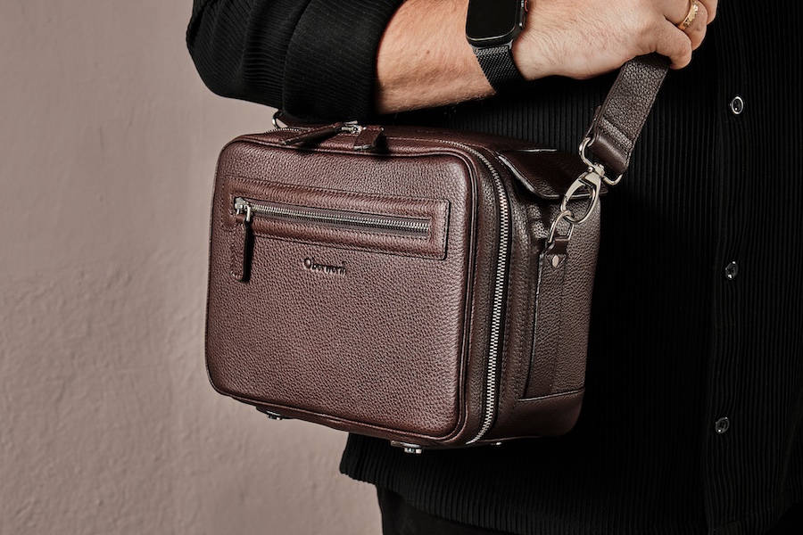 Other features include a red interior lining for visibility, an integrated hidden AirTag® compartment, a wide padded shoulder strap, and Oberwerth’s full-grain Casual leather construction. The bags are backed by a lifetime warranty.